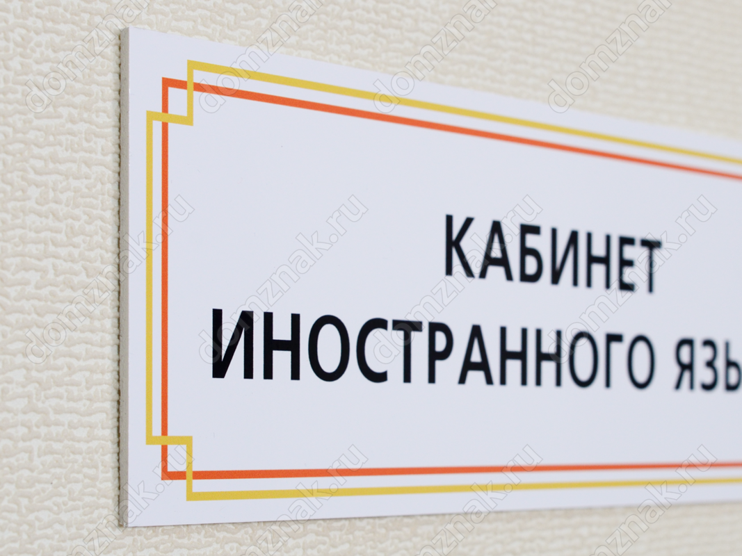 Табличка «Кабинет иностранного языка» изготавливается из пластика ПВХ толщиной 3 мм.